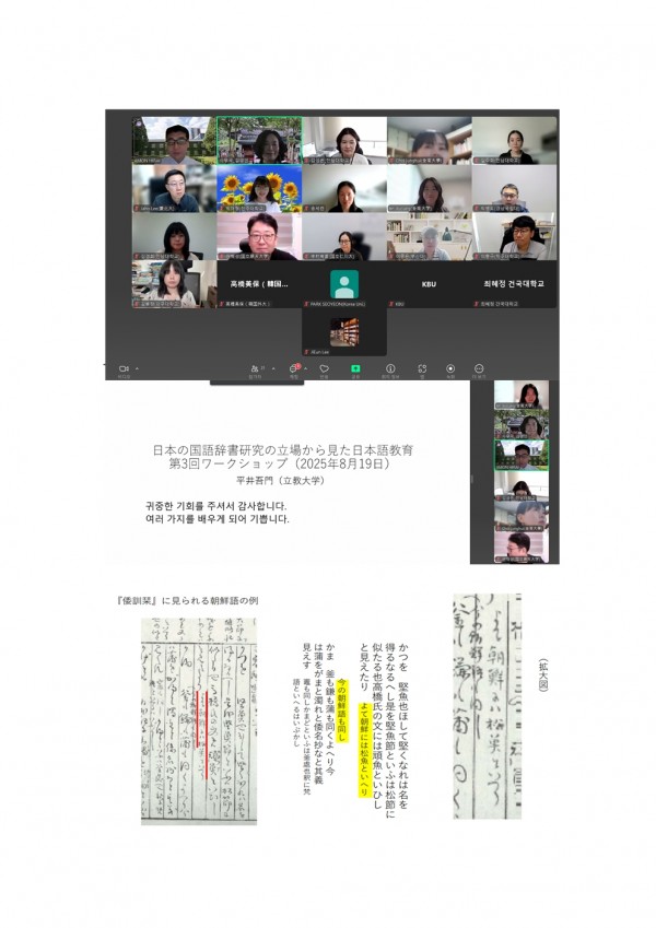 2025년도 제3회 정기 워크숍(8.19. 화) 성료 페이지 정보 작성자 관리자 작성일25-08-20 20:07 조회1,096회 댓글0건 이전글 다음글 목록 본문 한국일본어교육학회 회원 여러분의 성원에 힘입어 제3회 정기 워크숍을 성료하였습니다. 깊은 감사의 말씀 드립니다. 댓글목록 등록된 댓글이 없습니다. 이전글 다음글 목록