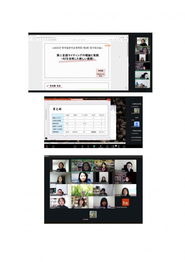 한국일본어교육학회 2025년도 제4회 정기 워크숍 성료 페이지 정보 작성자 관리자 작성일25-11-12 22:00 조회429회 댓글0건 다음글 목록 본문 회원 여러분의 성원에 힘입어 2025년도 제4회 정기 워크숍을 성료하였습니다. 진심으로 감사드립니다. 댓글목록 등록된 댓글이 없습니다. 다음글 목록